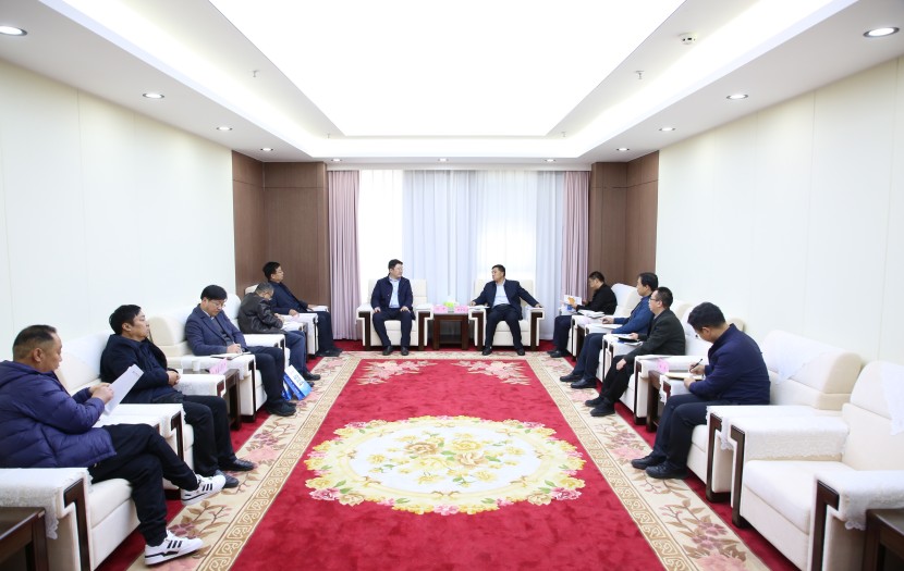 11月22日,PG赏金女王集团党委副书记、总司理袁崇亮在集团公司总部接待了来访的平煤神马建工集团总司理刘升一行。双方围绕甘肃宁正矿区九龙川煤炭资源项目开发建设等事宜举行座谈交流。