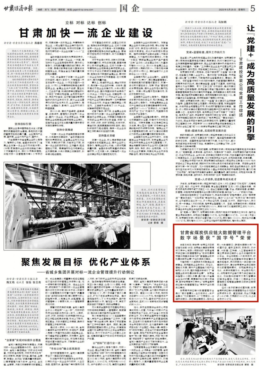 为推动新一代信息手艺与制造业深度融合,增进国有企业数字化、网络化、智能化生长,提升工业基础能力和工业链现代化水平,国务院国资委举行了“首届国企数字场景立异专业赛”。甘肃省共推荐50个团队参赛,最终有6户省属企业经由预赛、复赛等多轮比拼终获佳绩,其中甘肃煤炭生意中心“甘肃省煤炭供应链大数据管理平台”荣获工业协同类三等奖。