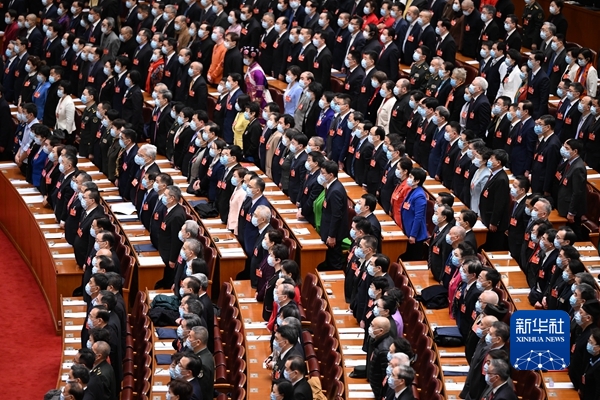 党和国家向导人习近平、李克强、栗战书、王沪宁、赵乐际、韩正、王岐山等在主席台就座,祝贺大会召开。